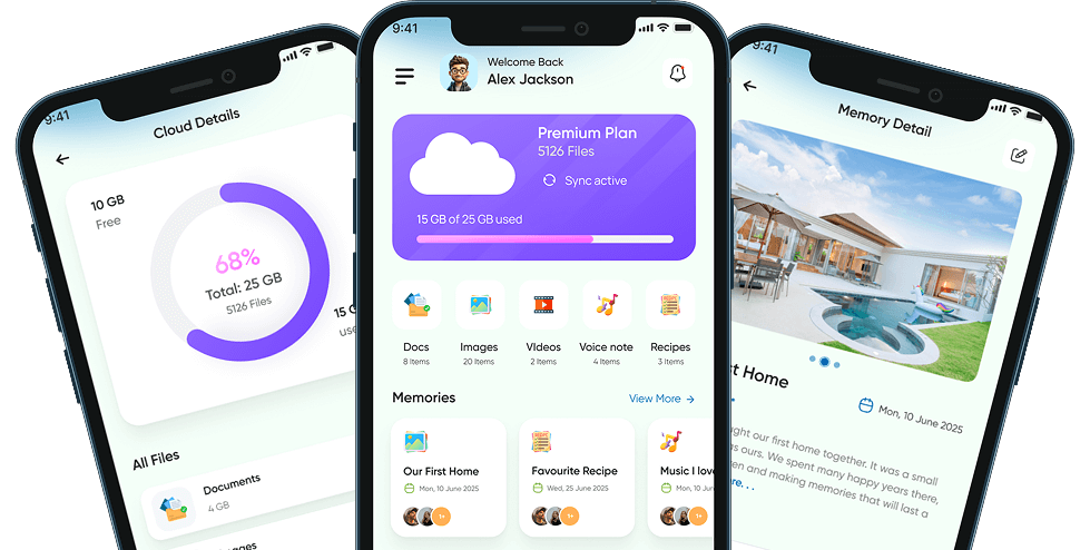 Store photos, videos, voice notes, and important documents with encryption. Decide who gets access and when.