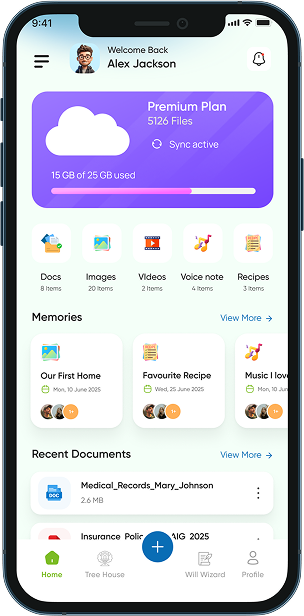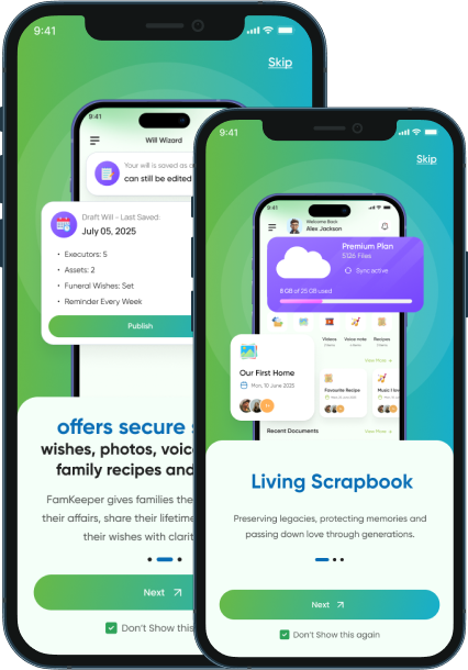 Unlike cloud drives, MyFamKeeper is built for families and legacies. It lets you set rules for who can access your vault, when, and under what conditions — even after your demise. Whether it’s leaving a message for your your directives and your loved ones., storing your funeral wishes, & passing down important files, MyFamKeeper ensures for generations its a family gift that keeps on giving through your griving jouurney.